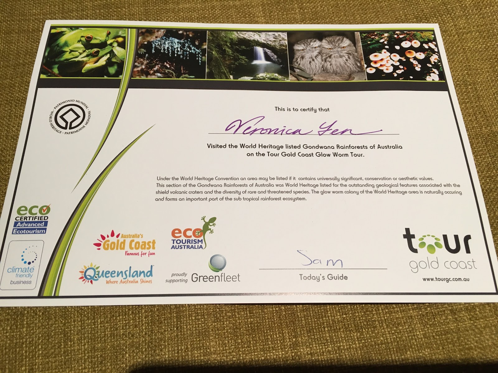 最後,每人都拿到一張證書,一趟熱帶雨林的夜蟲之旅,讓我更珍惜這個難得的土地:黃金海岸!