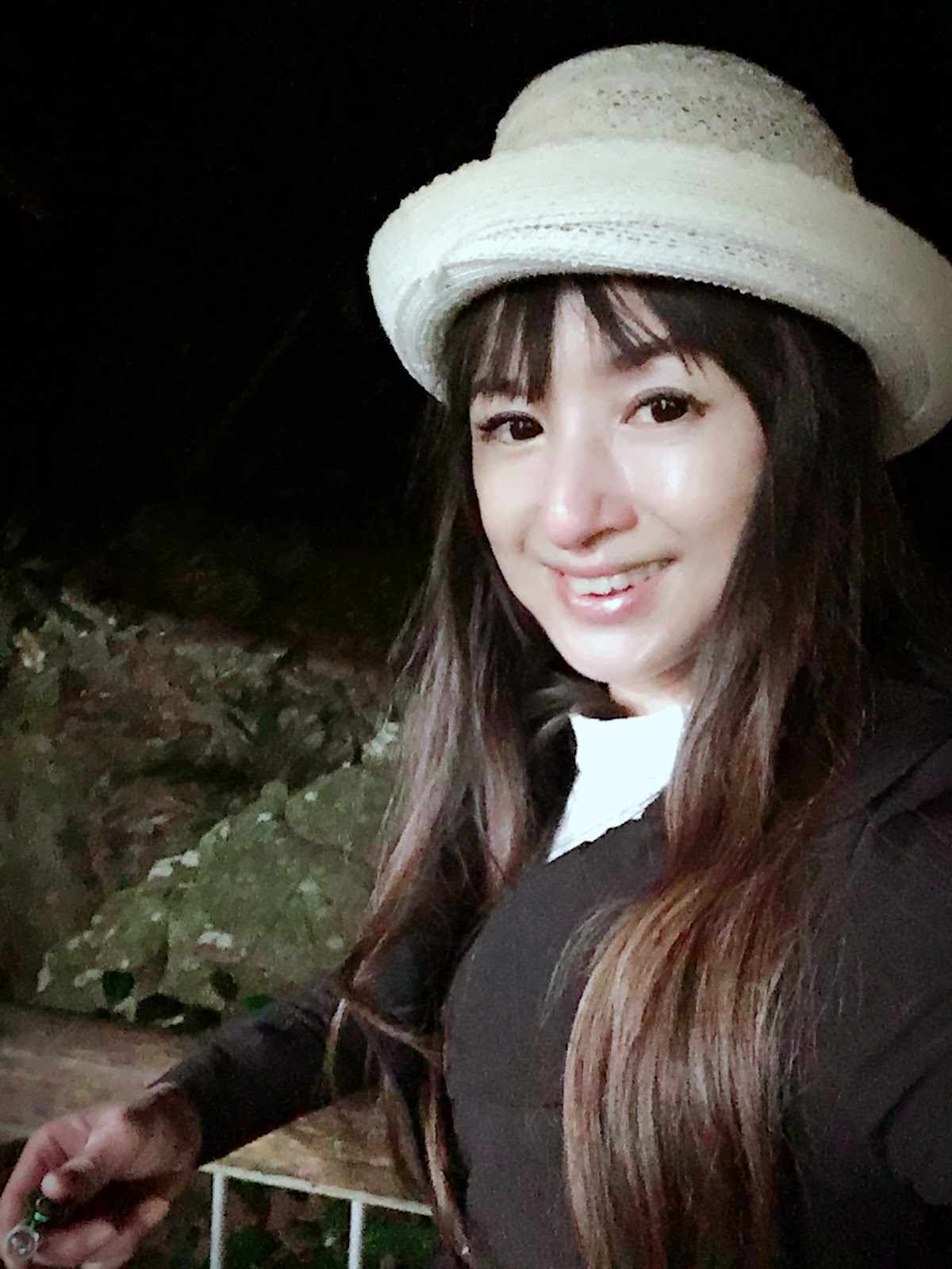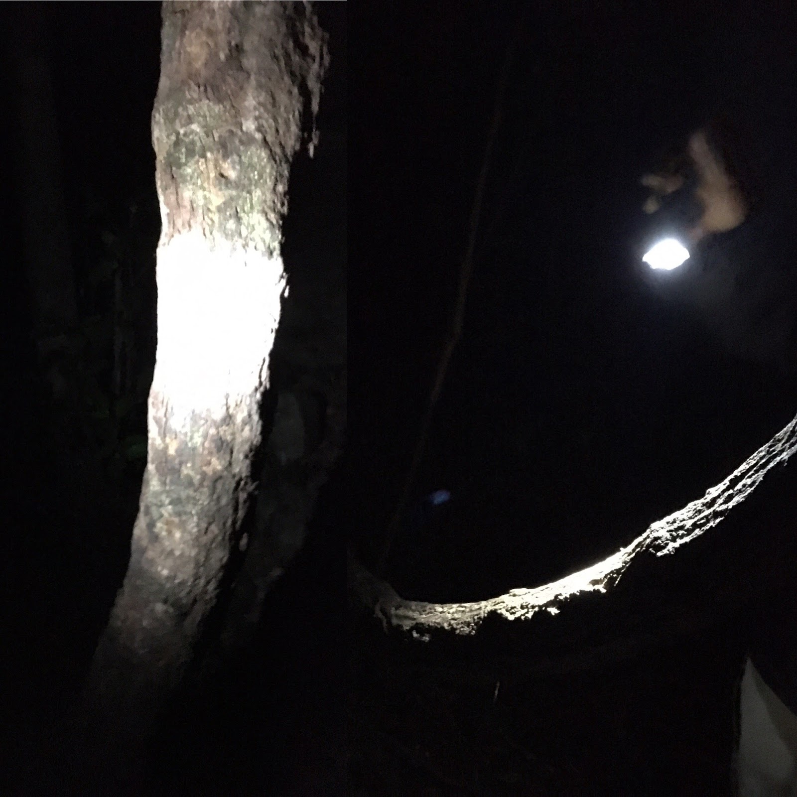 雖在熱帶,冬天的夜晚還是有點兒微寒的啦,準備進入熱帶雨林囉!(手上抓著迷你手電筒)