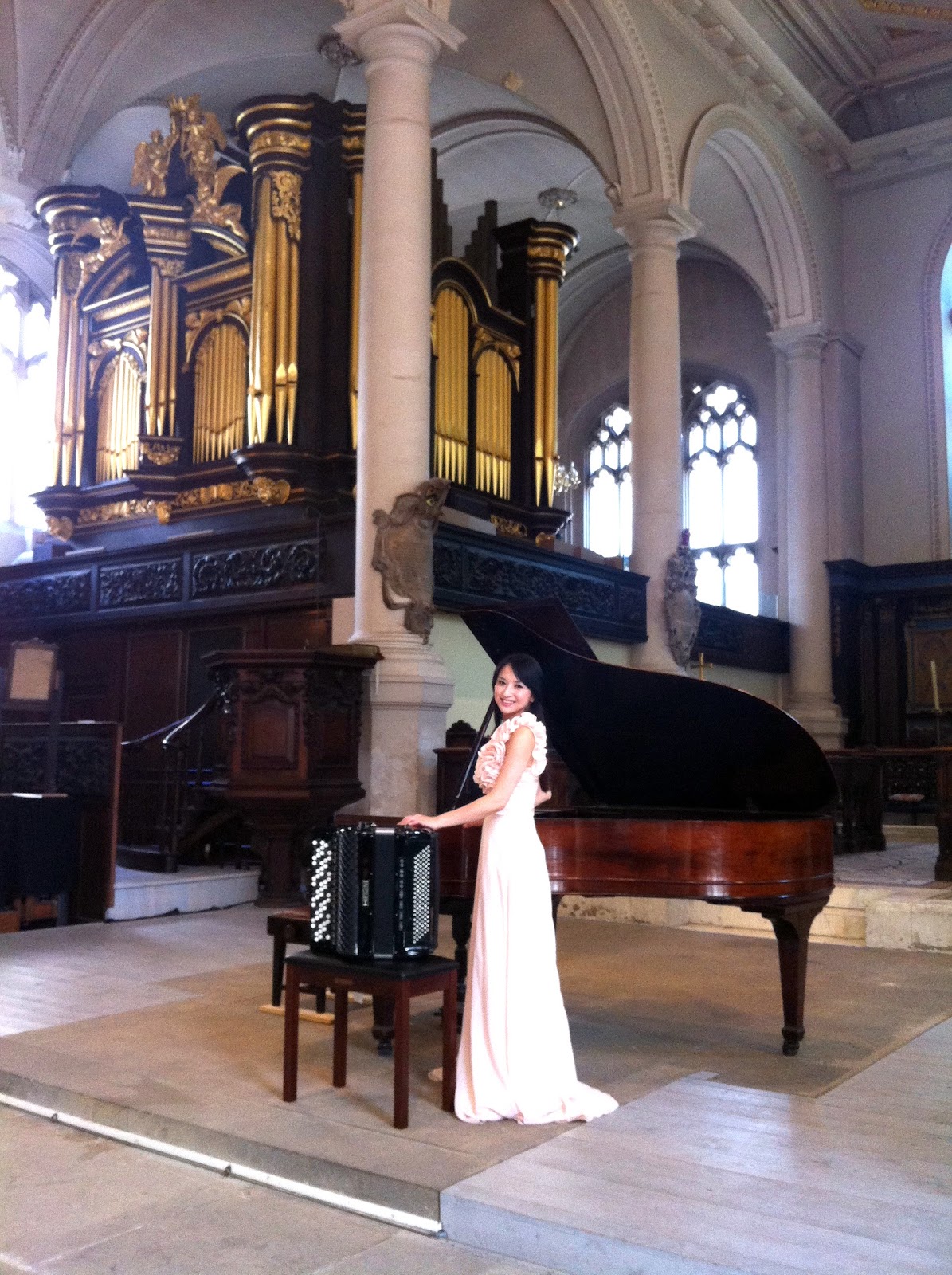 音樂會中,我邊彈奏著,邊仰望上方那臺韓德爾與孟德爾頌曾彈奏過的美麗的管風琴。指尖下的音樂,穿越拱廊、通過柱式到達聖殿的最高點,再迴旋至耳邊震盪共鳴。我似乎接受了一場洗禮,如同一個祈禱,那是韓德爾、孟德爾頌與許多其他音樂家也曾經歷過的音樂祈禱……。