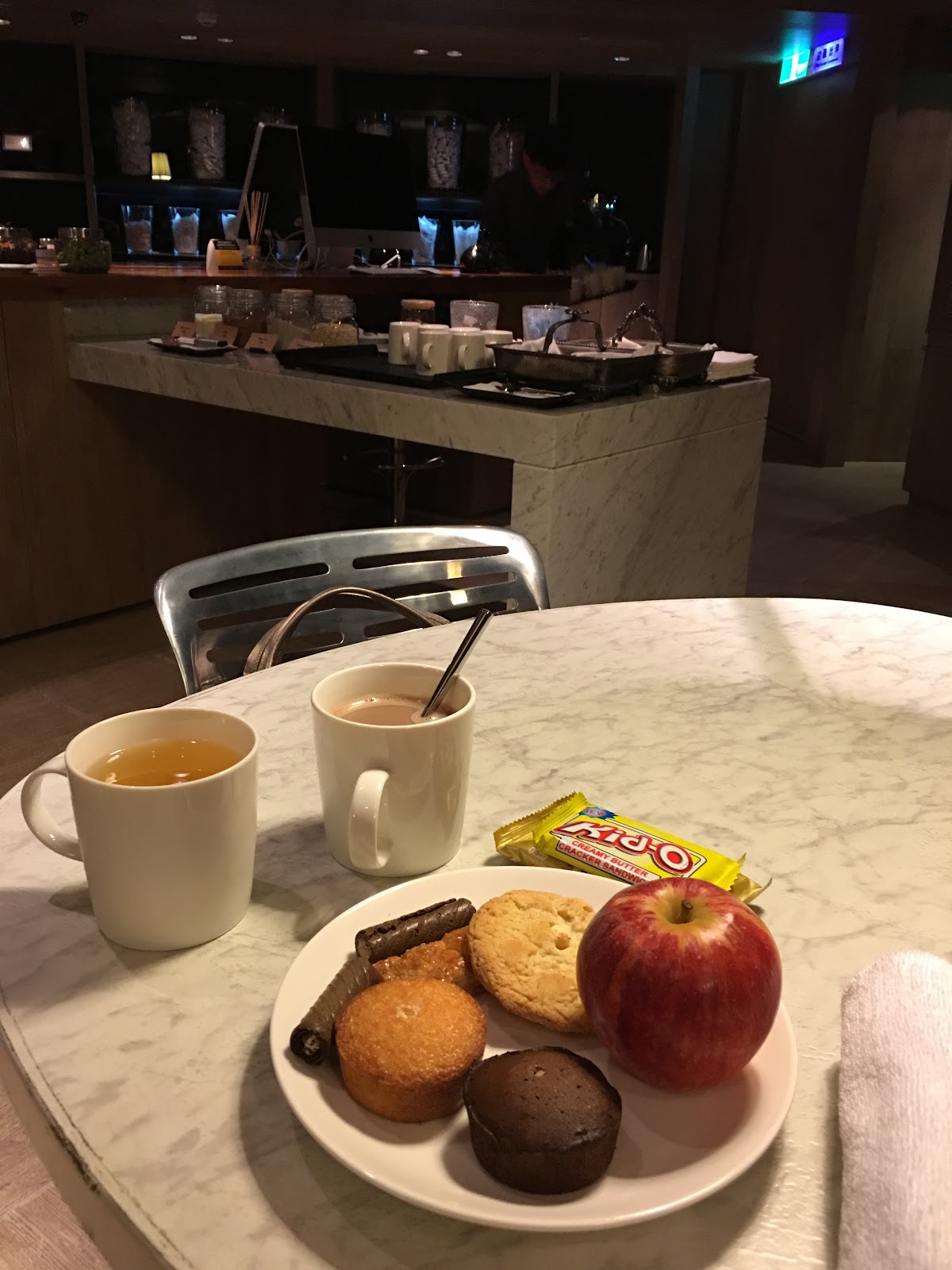 感謝這間好酷的旅館,雖然早過了用餐時間餐廳已經關了,不過旅館二樓有個不關門的甜點區,我的晚餐就都吃這些了啊!