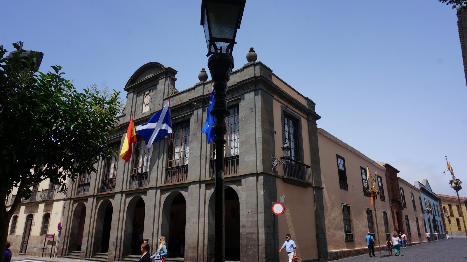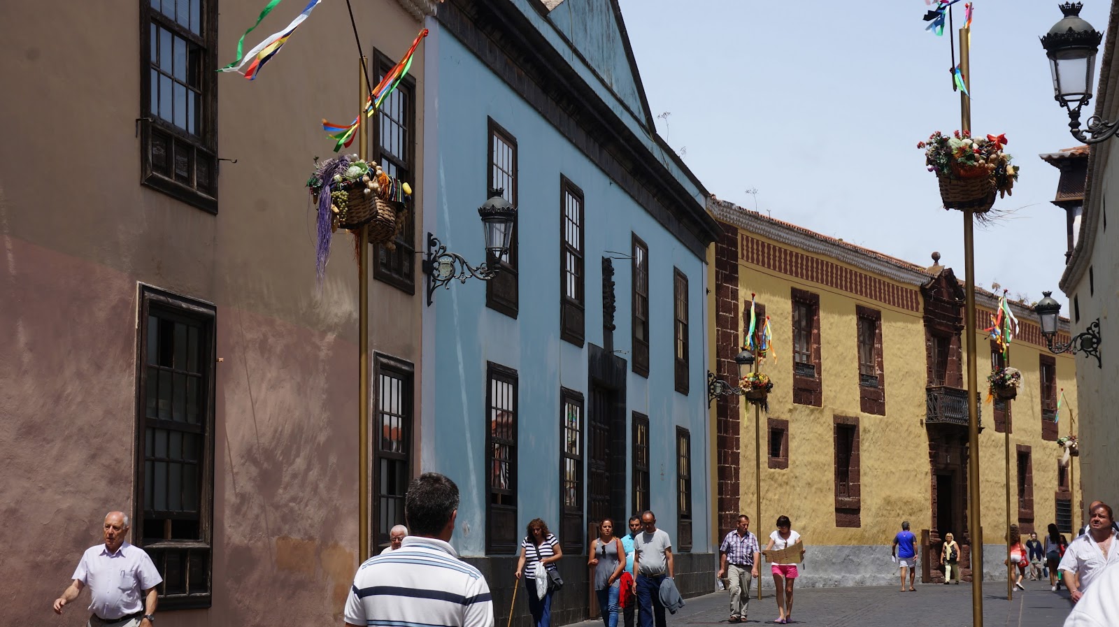 我微醺的走到旅館前的廣場,導遊開始訴說古城的歷史,從1500年開始,Governor Fernandes de Lugo開始這個文藝復興的造城計畫,完全振奮我!這是Tenerife之前的首府,Canary Islands第三大城(第一大是Gran Canaria的Las Palmas,第二大是Tenerife現在的首府Santa Cruz),有別於中世紀的彎曲的窄路,La Laguna的「城市設計」正表現著文藝復興精神:回到人文、重視理性。平行與垂直的道路,規則呈現,甚至連道路上的重要建築方位,都有其宗教性與神秘的象徵意義!眼前的Town Hall, Convent, New Palace,細緻的西班牙巴洛克夾著北非摩爾風格、與Canary當地風格,每一座建築都有歷史!細細解讀每棟建築,之後再放大格局觀賞他們的分佈,更能瞭解整個都市設計的宗教意義。簡直是個閱讀不完的龐大藝術品啊!
