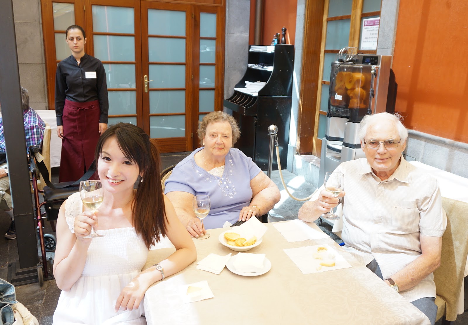 Waiter先倒了fruity white wine… 說實在,好甜好好喝啊!比前一天在Gran Canaria的Satna Brigida品的白酒更令我喜悅!搭配他們也引以為傲的當地goat cheese,實在絕配呢!然後是dry white wine,顏色更清澈,也順口好喝,但配上的軟cheese,沒味道?!哈!最後是紅酒,strong的總要留最後。但已經喝完兩種,而且,根本沒酒量的我兩杯白酒都喝光後,也不知是否醉了,也把紅酒就喝完啦!