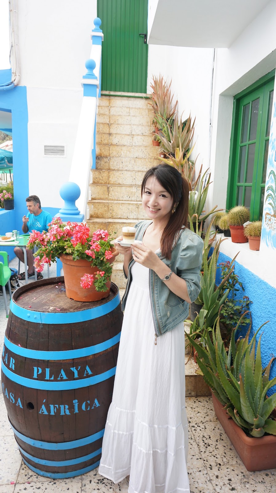 Patrick帶我走到海灘對面的小店Casa Africa,跟老闆年要了兩杯Tenerife咖啡,就是我昨天在Santa Cruz喝的美味特調啊!今天清楚的看他製作步驟,尤其最後一個步驟:甜濃的liquide是重點!!然後我們坐下來一起喝咖啡,繼續聊著。