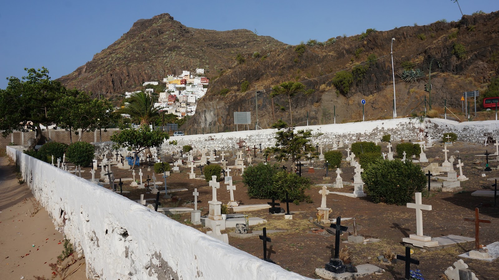 這海灘有個奇特景象,就是他正前方竟然是cemetary(墓地)!!! 一個個十字架,是當地Santa Angres人們的安息處。安息地與海灘相連,真是好怪異的組合啊!