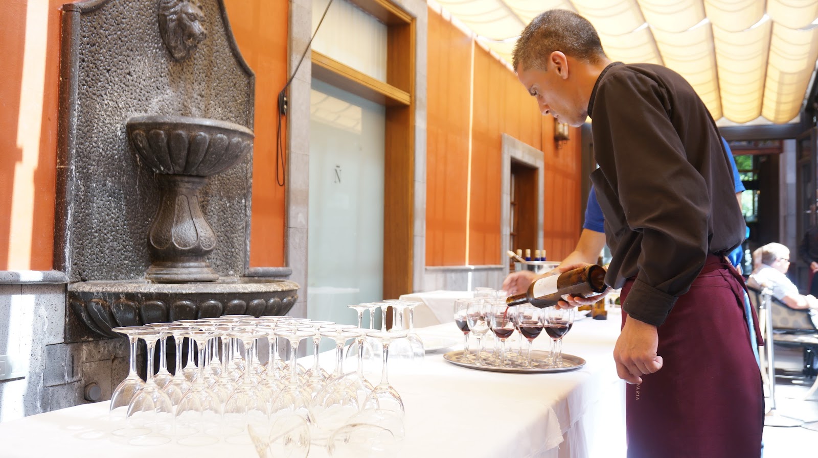 不過走進這Hotel,也立刻感受到歷史的魅力。就在中庭找個位子坐下來,wine tasting已經開始了呢!我選在最偏遠的小位子,因為我只有一個人,不一會兒,來了一對英國老先生老太太,在我旁邊坐下來,老先生看見我就說:’Veronica, thank you for your concert! I love your music! Many pianists just play the notes, but you really express every piece… Whenever you are playing next time, I’d like to go…’ (謝謝你的音樂會!我很喜歡你的音樂!很多鋼琴家就是把音彈出來,可是妳把每曲都彈得充滿感情。下次我還要去聽妳彈!)