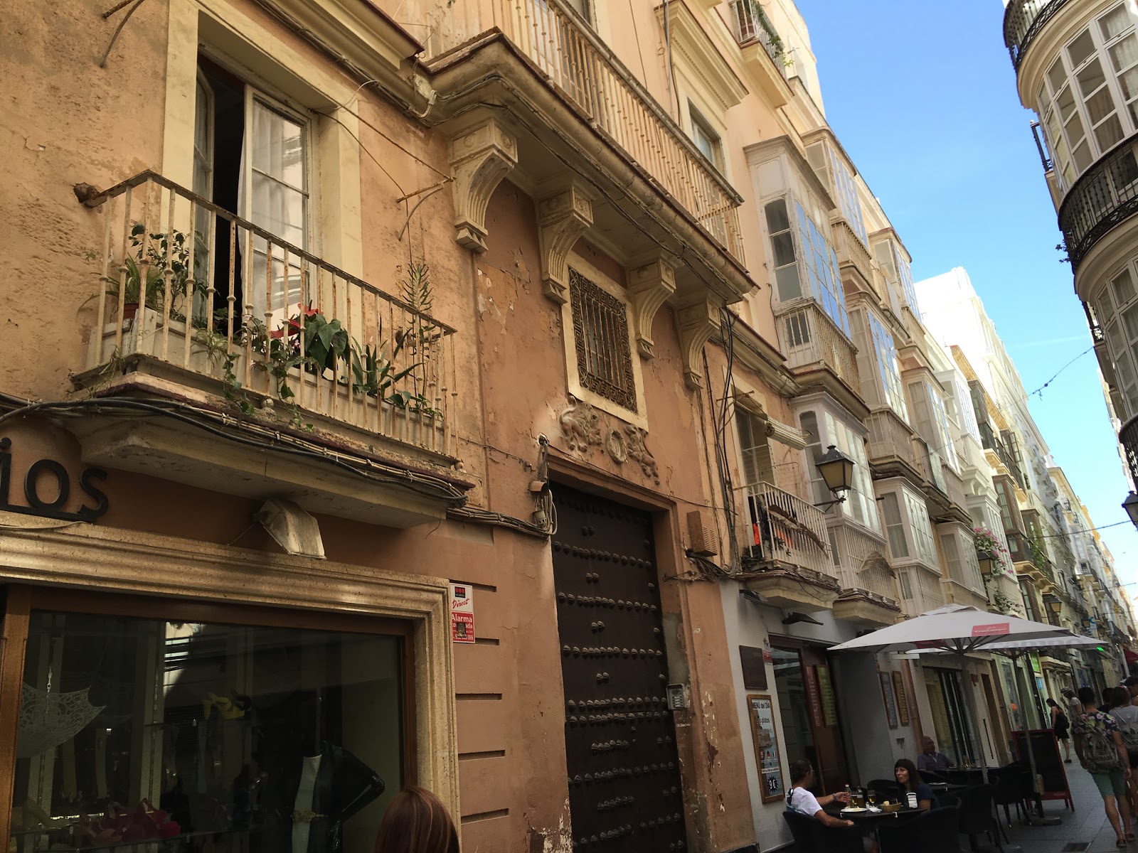 我還是隨著地圖邁向Cadiz城的另一個鎮館之寶:Museo de Cadiz(城市博物館)。沿路陽光真好,一整路都是氣派、暖色系的房子,不過,一樓店家們還真全都休息了。真不敢相信儘管失業率高、生計不足,在這麼多觀光客的此時,西班牙人們還是休息去啦!本想沿路逛著小店看看當地的手作,也只能看著關門的櫥窗了。有點兒掃興的走著,好不容易看到ㄧ家店還開著啊!!我立刻踏入想找些西班牙手工藝品,結果原來是中國人開的,所有物品都made in China, 只能說,還是東方人勤奮啊!我於是繼續走,至少建築、公園都是開放的,一路飽覽漂亮洋窗台, 沿途的民房、大宅,處處都是從「摩爾人曾在此」的痕跡:花磁磚裝飾與花麗木頭雕刻的陽台,讓Andalusia的歐洲風格憑添東方情調!