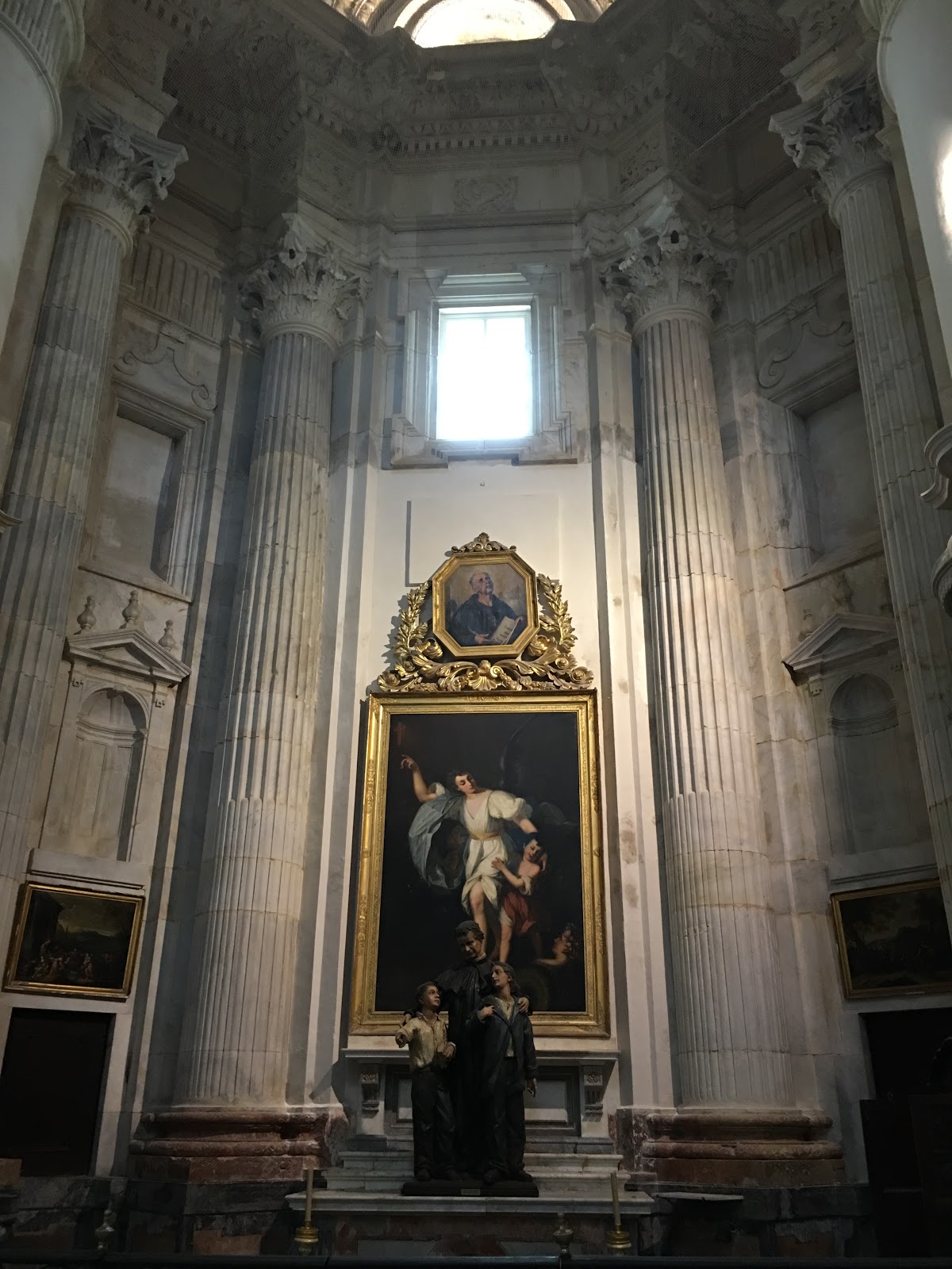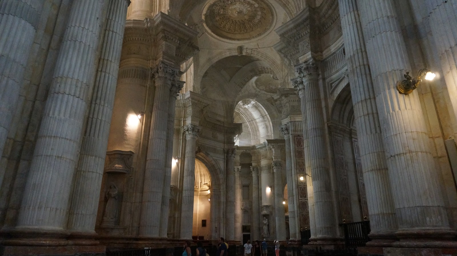 看完廣場精彩的Flamenco表演,我當然要步入今日的目的地啦!大教堂可是Cadiz的鎮館之寶,入內還得排隊呢!當我一踏入聖堂,果然又回到西歐的氛圍裡:它立刻給我一種純淨的白色調,與廣場那色彩繽紛的東方情調完全不一樣!
