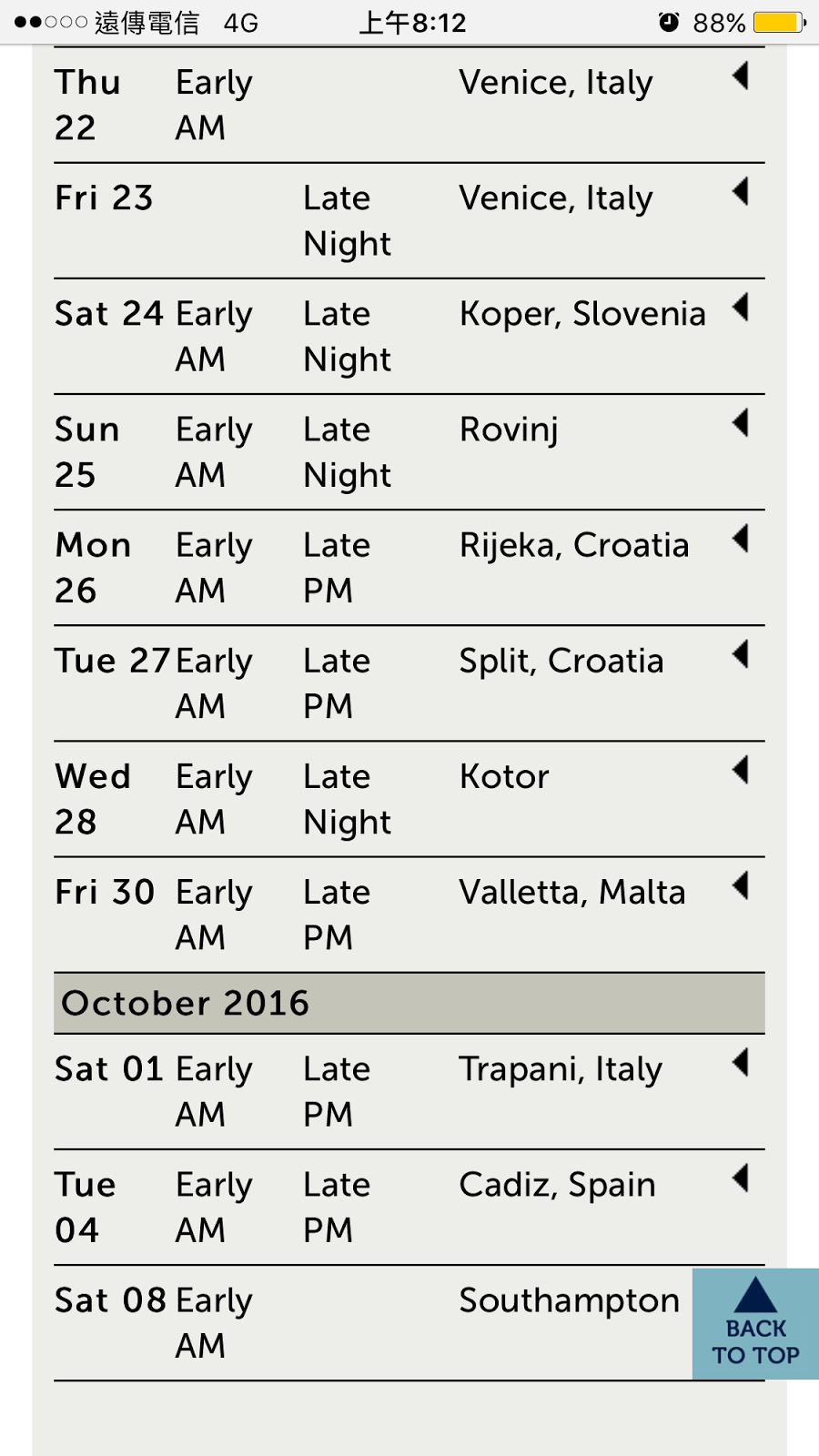 這趟行程為期一個月,真的停留好多的港口啊! |