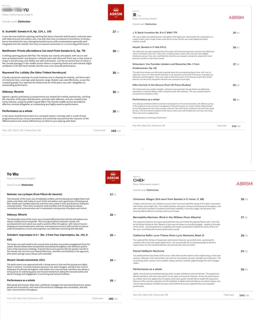 要能與專業同步,我會安排認真的學生們,在12歲左右考完8級,並且以特優的成績達成。但並非一定要有那張證書,而是藉著系統的考級,慢慢建立起實力。而ABRSM有規定要考過五級樂理,這點非常好,因為五級樂理也是12歲音樂班孩子需要的能力(我是以英國的音樂學校來看,因為我比較熟悉)。接下來國中三年期間,希望帶學生繼續達到ARSM的程度,高中再繼續彈到LRSM,當然需要學生付出相對的努力,我也會創造非常多的舞台與不同的學習資源,讓演奏實力不斷推進。