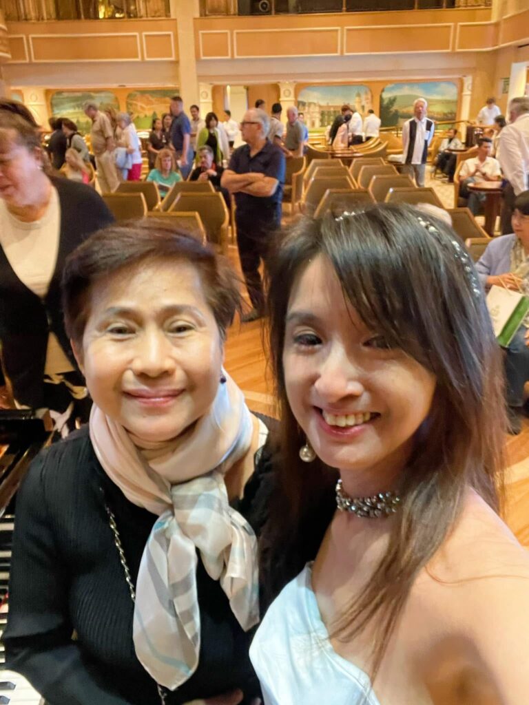 昨晚宵夜時,有一位泰國太太前來跟我說話:「喔!妳就是那位鋼琴家嗎?喔!妳真的太棒了!妳完全感動我的心…」她激動的幾乎要哭了… 「我聽過好多人彈蕭邦,我好喜歡,不過,妳的好美好美, I love your music and I love you! You really touched my heart!!」她真誠的眼神直視著我,然後繼續說「妳知道嗎?我好愛鋼琴!我從小就好想學,我媽媽拿錢給我哥哥叫他帶我去學,結果,他都拿去花掉了,還不準我跟媽媽說… 」