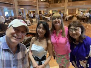 昨晚宵夜時,有一位泰國太太前來跟我說話:「喔!妳就是那位鋼琴家嗎?喔!妳真的太棒了!妳完全感動我的心…」她激動的幾乎要哭了… 「我聽過好多人彈蕭邦,我好喜歡,不過,妳的好美好美, I love your music and I love you! You really touched my heart!!」她真誠的眼神直視著我,然後繼續說「妳知道嗎?我好愛鋼琴!我從小就好想學,我媽媽拿錢給我哥哥叫他帶我去學,結果,他都拿去花掉了,還不準我跟媽媽說… 」