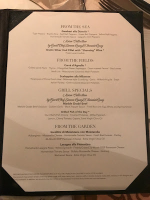 晚餐,在銀海郵輪,是一天中最輝煌的行程。說「輝煌」,其實一點也不為過!晚間七點到十點,a la Carte菜單從開胃酒、開胃菜、前菜、湯品、沙拉、中段餐、主餐、配餐、甜點、冰淇淋、咖啡或茶,每一種類都選擇多樣、菜色常新、而且保證都華麗細緻的上桌!那是多感官的刺激、身心飽足的極致饗宴!當天,我從Hobart古城步行回來,儘管星期天的傍晚沒有店家開放,卻也感受出Tasmania島的首都,是如何的與世隔絕卻又五臟俱全。我心情放鬆的出去走走,早就忘記了口罩、