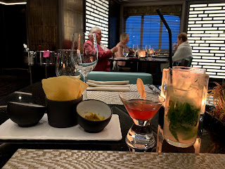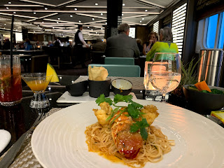 Silver Muse 銀妙號有八間餐廳,雖然她是只有五百位旅客的郵輪,總盡其所能的餐餐為旅人們提供多元又精緻的味蕾祭典:三家義大利、一家法式、一家日本鐵板燒、一家當代創意酒館、一家現烤牛排館、一家是亞洲創意餐。這麼多選擇,但其實我也不太能選擇,因為其中六間餐廳要訂位,另一家要與旅人們共桌,剛上船的當晚我只想靜靜一個人,就直接踏入Indochine:亞洲創意料理。笑容滿面的餐廳長見到我,非常友善熱情的打招呼,為我安排座位之際,一位調酒師走來,右手叉腰向餐廳長示意要護送我到座位。餐廳長立刻跟調酒師說:「no no no!」換成他叉著腰,我邊看著他們搶著護送我入座,邊在旁笑彎了腰。這裡的服務周到,還會以俏皮又不冒犯的方式,讓旅人備感尊貴。