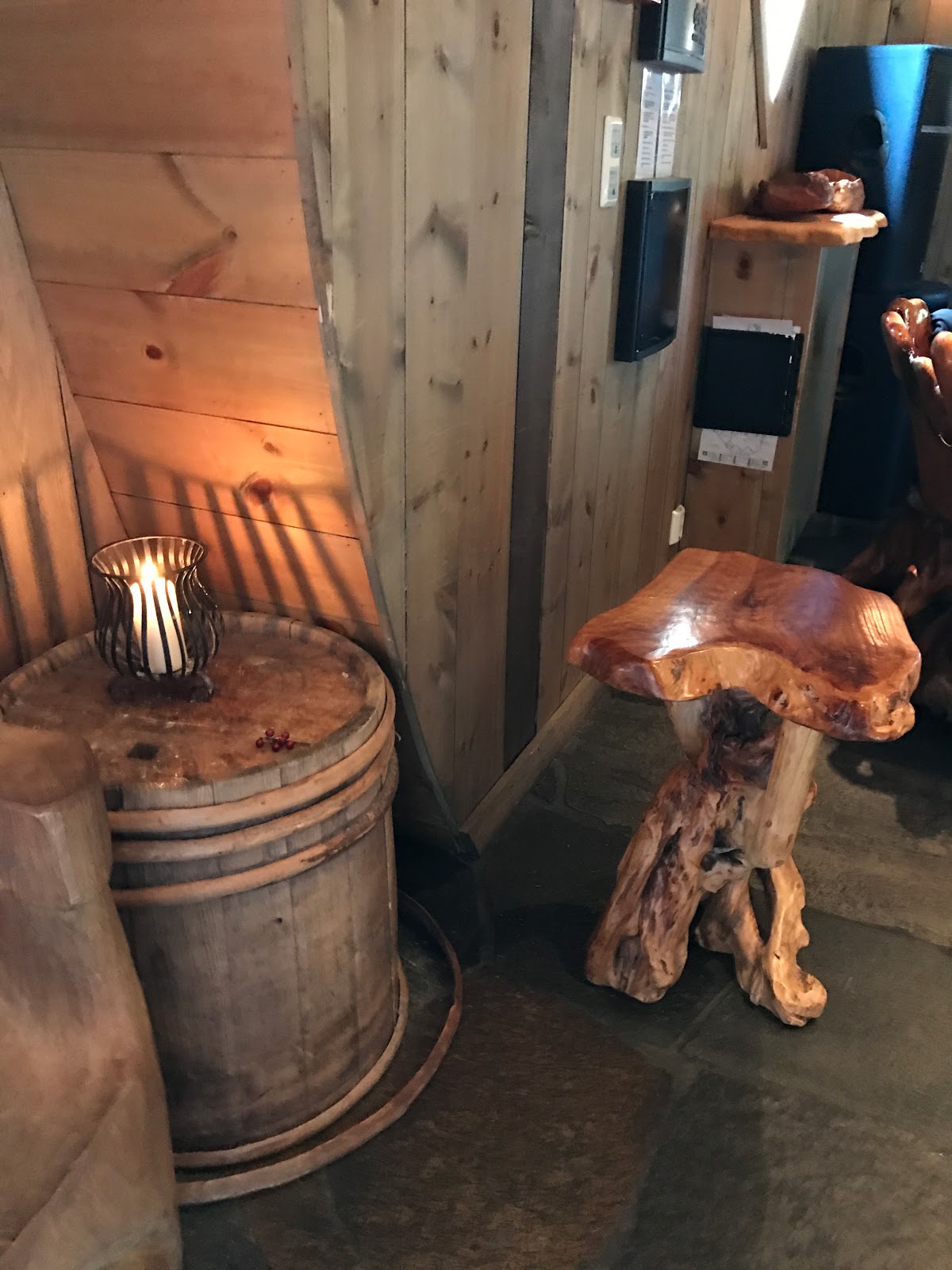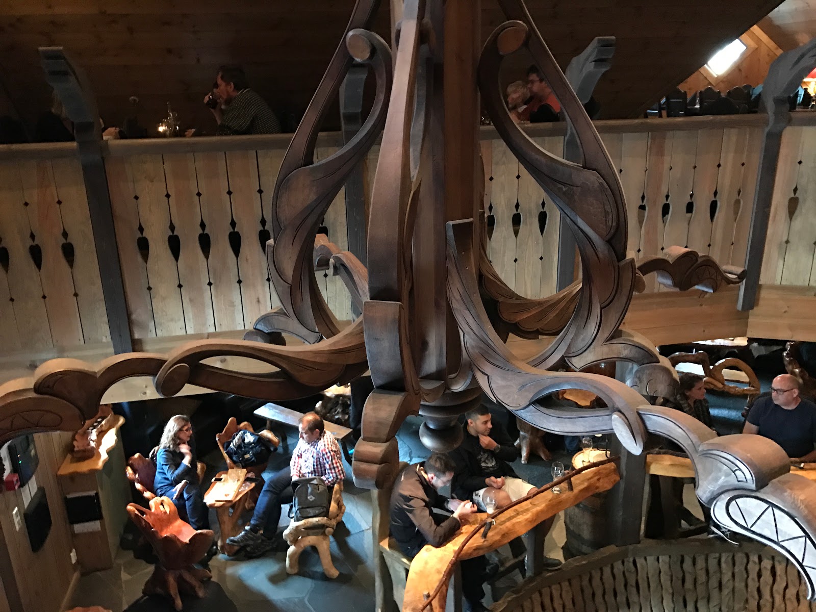 於是,我坐在「龍頭」雕刻旁,木頭雕刻藤蔓造型的椅子上,品嚐挪威賣酒與農場的焦糖起司。它濃郁的如同糖,但又不完全是甜味,卻是重口味,麥酒的清新為他平衡… 我難以形容那種絕妙的身心飽足,覺得這家餐廳簡直是今天降臨的奇蹟。